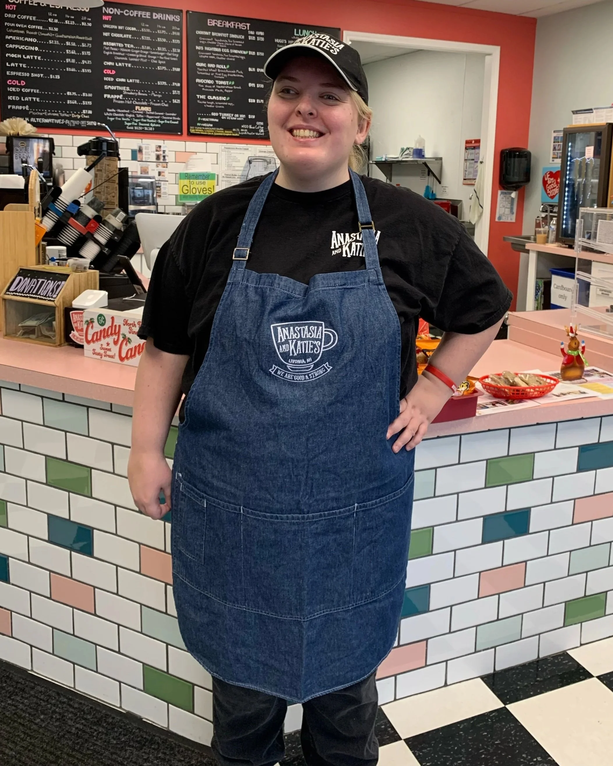 Want to rep Anastasia and Katies’s in your own kitchen? Pick up an embroidered denim apron today!